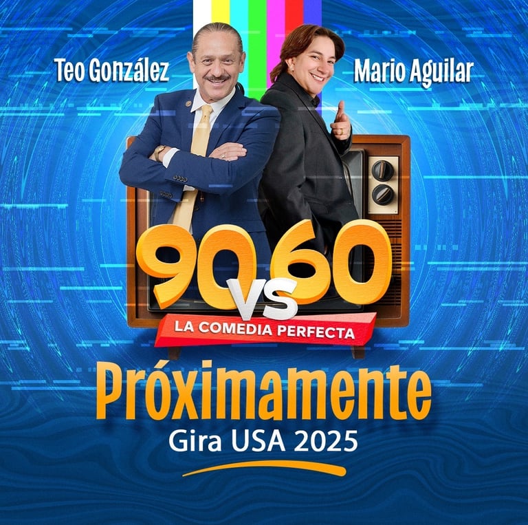 ¡Este 2025 comienza con el pie derecho! Mario Aguilar y Teo González, dos gigantes de la comedia, se unen en una colaboración que nadie esperaba, pero que todos necesitábamos. Presentan 90 vs 60, una nueva gira que promete hacer reír a todo el público con su increíble fusión de humor de dos generaciones distintas.
